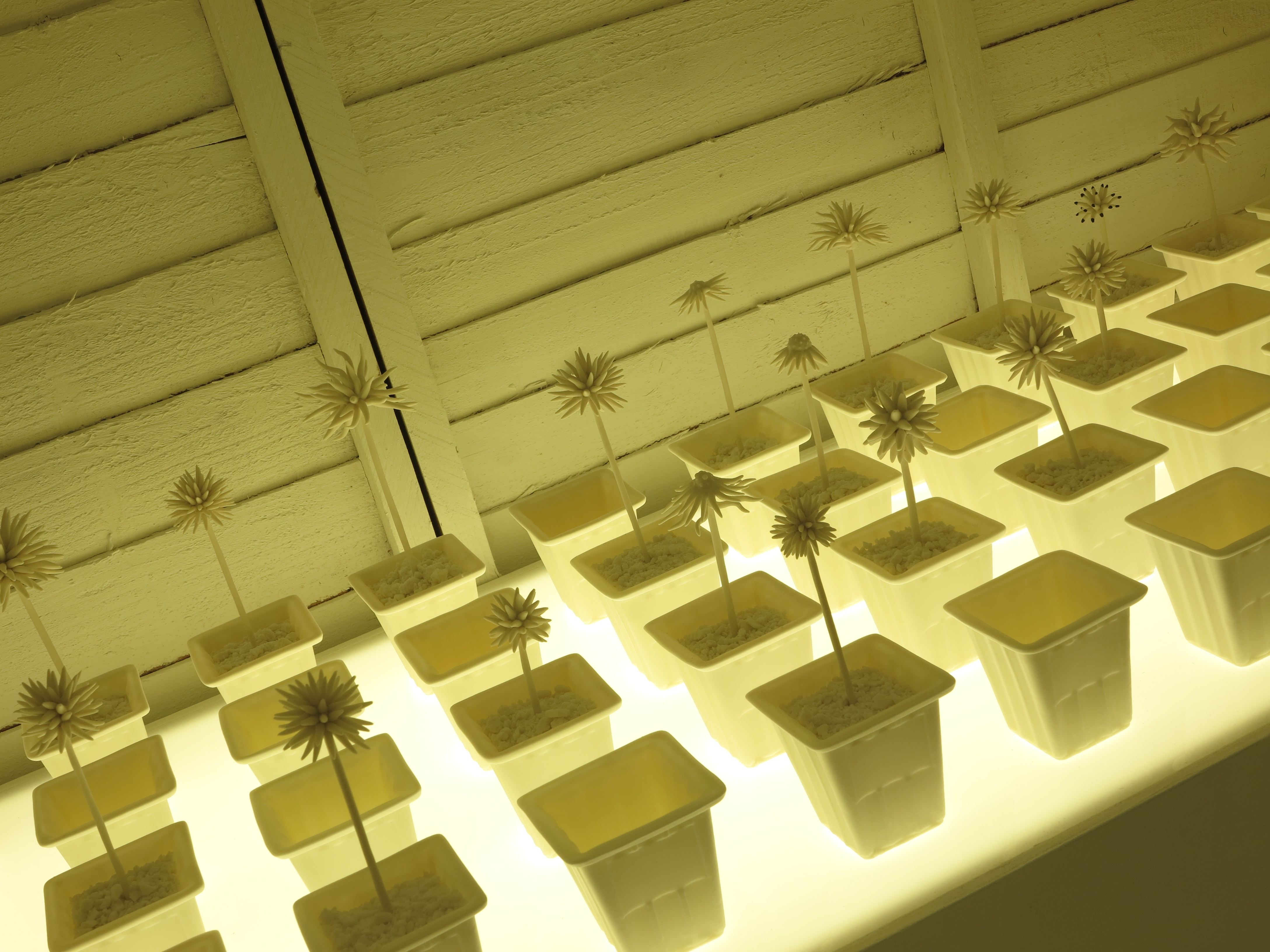 Lorna Fraser is inspired by the infinite array of forms in the botanical world, and takes the intricate fruit of the large tropical tree Kembang Semankuk as her starting point for this exhibition. This tree grows in the rain forests of Malaysia and her installation captures the moment when it releases its fruits allowing them to flutter to the forest floor covering it in a thick carpet. As though frozen in time, this installation aims to capture the fragility and beauty of this event in the life-cycle of the tree – the completion of another season. Lorna uses her creative process as a means of engagement and discussion about the natural environment and our duty to protect it.